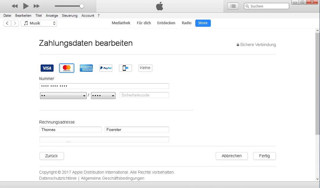 Wer ein Apple Gerät mit allen Optionen nutzen möchte benötigt eine Apple ID. Der erste Schritt dazu, ist eine Registrierung bei Apple (https://appleid.apple.com/account#!&page=create). Bis hierher kein Problem. Der zweite Schritt ist die Vervollständigung der Angaben für die neue Apple ID, das heisst es muss eine Zahlungsinformation angegeben werden.